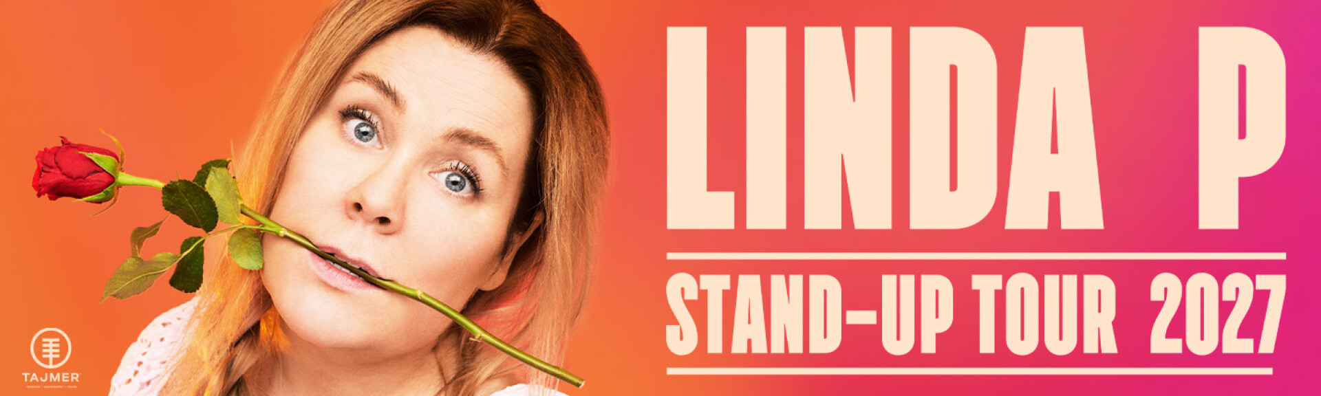 Dronningen af stand-up er klar med nyt onemanshow: Linda P – Stand-up Tour 2027 — som altid højere, vildere og mere flabet end sidst, du så hende!